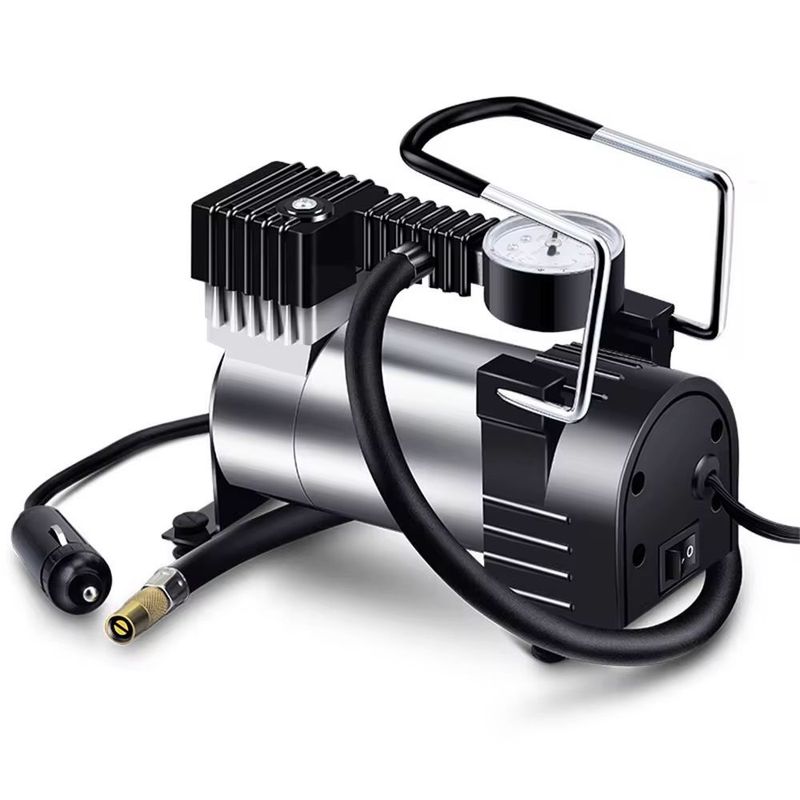 Utilizes the 12V power from your car's cigarette lighter socket, equipped with an easy-to-operate compressor featuring a PSI pressure gauge, suitable for inflating tires and various inflatable items, comes with 3 pieces of adaptor kits.