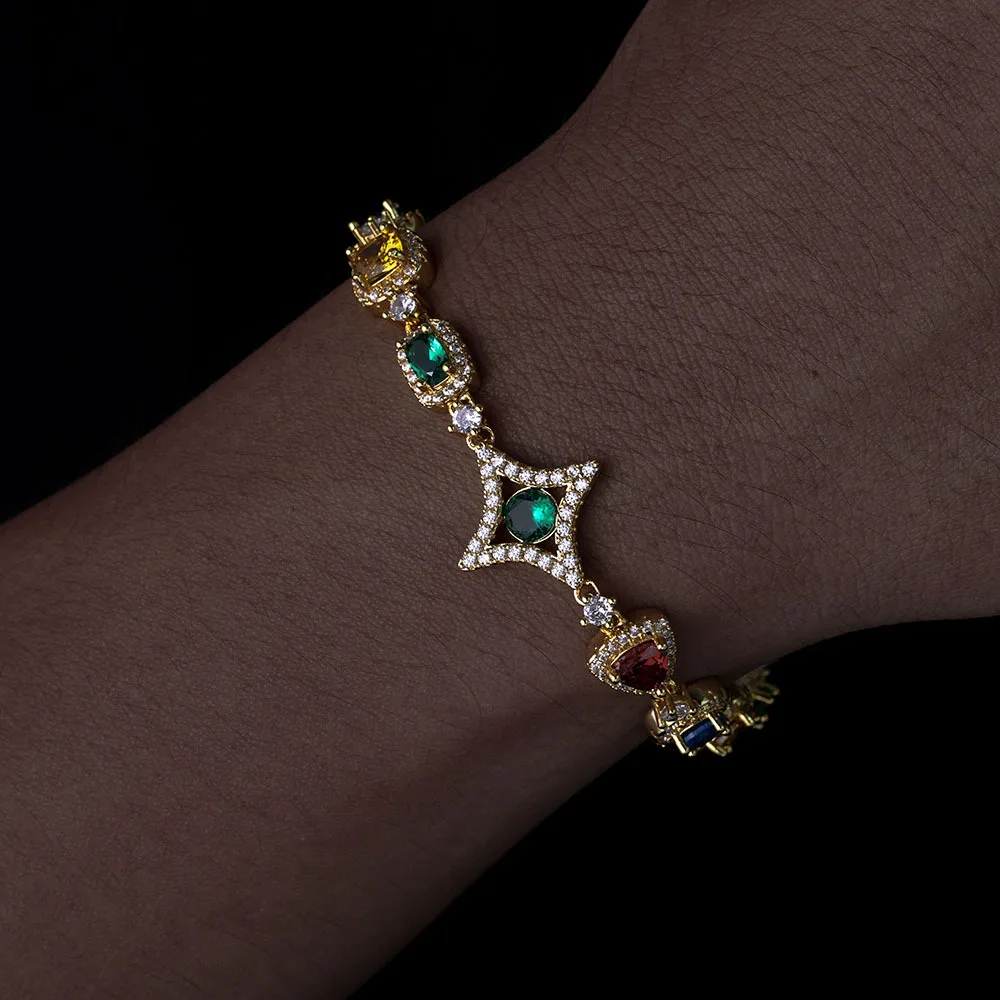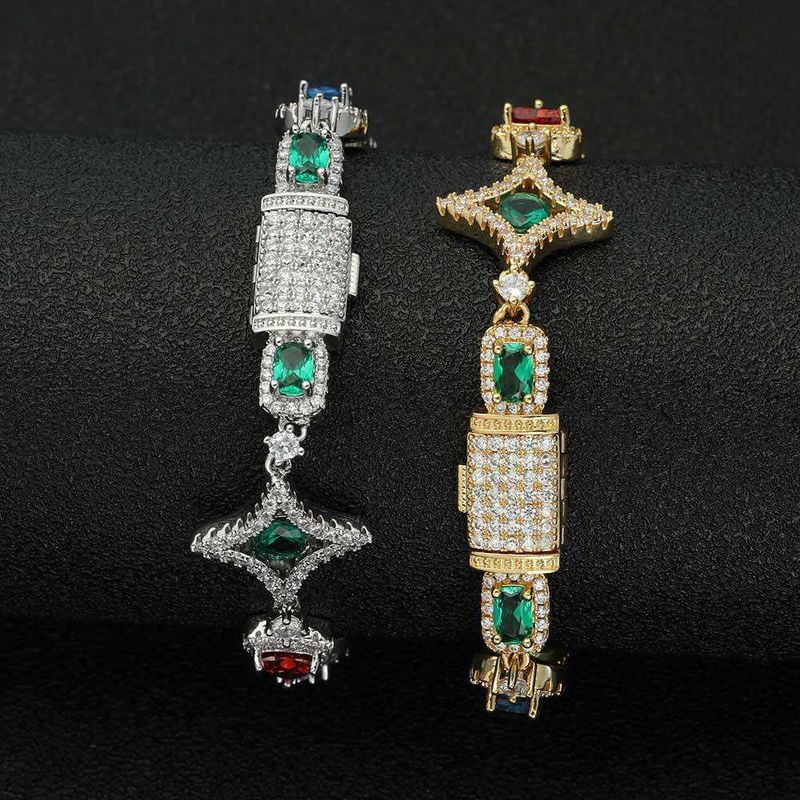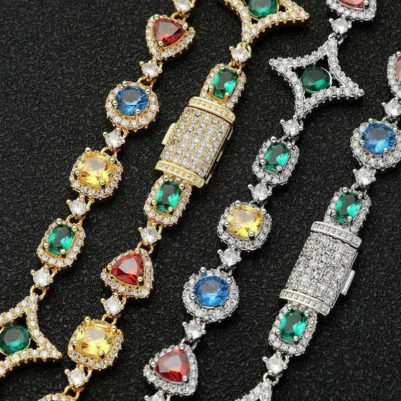 Hip-hop style jewelry accessories with colored gemstones, unisex bracelets suitable for both men and women