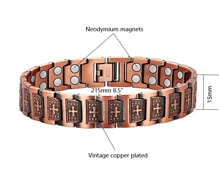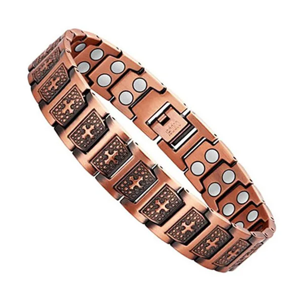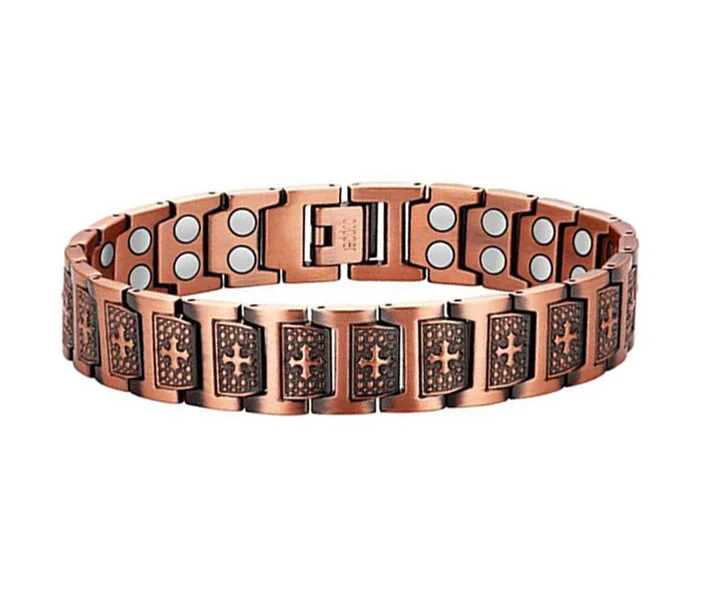 Vintage Red Copper Magnetic Men's Cross Pattern Health Energy Protection Bracelet